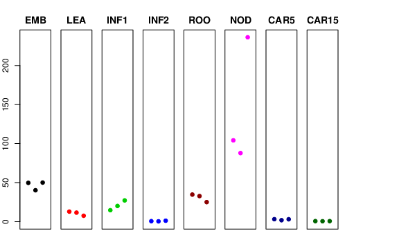 | INF2 | Developing inflorescences (1-1.5 cm) | 0.66631 | 0.452694 | 1.27544 | 0.803257 |