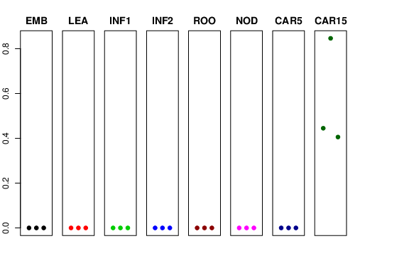 | ROO | Roots from the seedlings (10 cm shoot stage) | 0 | 0 | 0 | 0 |
