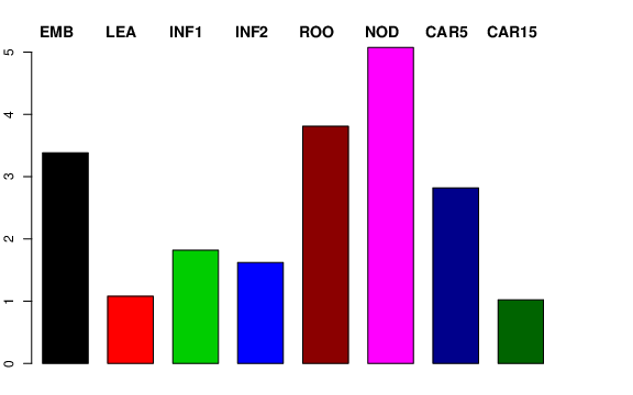 | ROO | Roots from the seedlings (10 cm shoot stage) | 6.64205 | 2.68729 | 3.36309 | 3.80994 |