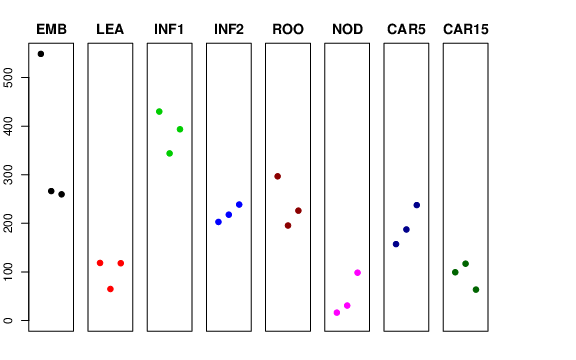| ROO | Roots from the seedlings (10 cm shoot stage) | 296.809 | 195.501 | 226.096 | 0 |