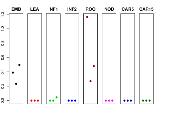 | ROO | Roots from the seedlings (10 cm shoot stage) | 1.16369 | 0.270351 | 0.478872 | 0.485543 |