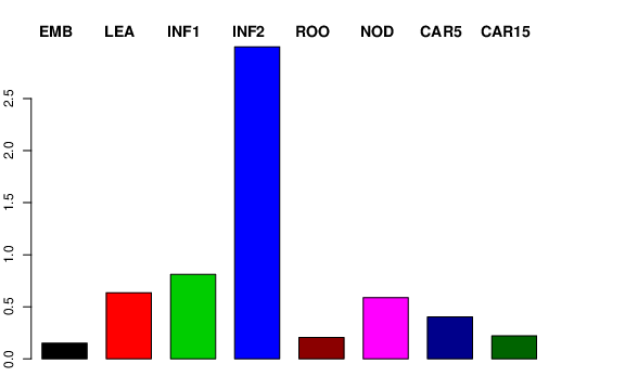 | INF1 | Young developing inflorescences (5mm) | 1.45763 | 0.814722 | 2.0825 | 0.810991 |