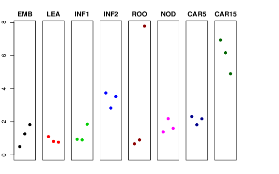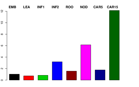 | ROO | Roots from the seedlings (10 cm shoot stage) | 0.67059 | 0.908299 | 7.77355 | 1.55773 |