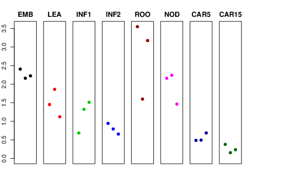 | ROO | Roots from the seedlings (10 cm shoot stage) | 3.54774 | 1.59861 | 3.17365 | 2.77581 |