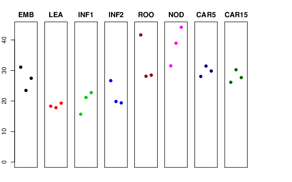 | INF2 | Developing inflorescences (1-1.5 cm) | 26.6649 | 19.8365 | 19.3729 | 22.5387 |