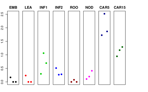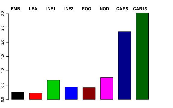 | ROO | Roots from the seedlings (10 cm shoot stage) | 0 | 0.0776624 | 0 | 0.413218 |