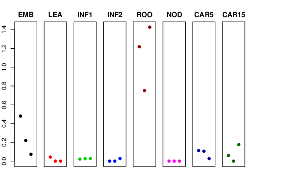 | ROO | Roots from the seedlings (10 cm shoot stage) | 1.21813 | 0.751563 | 1.42756 | 1.15771 |