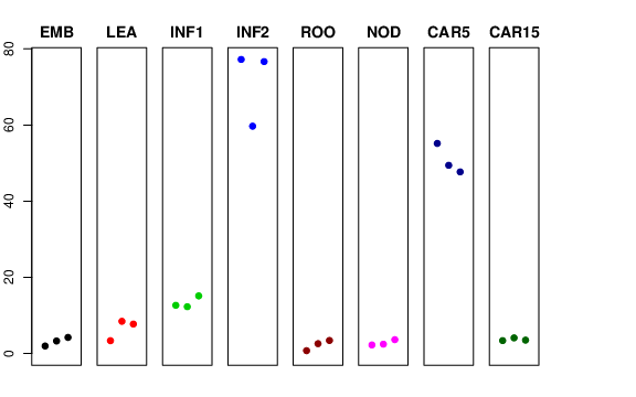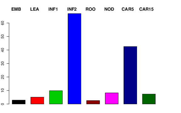 | ROO | Roots from the seedlings (10 cm shoot stage) | 0.727282 | 2.56799 | 3.40997 | 2.55737 |