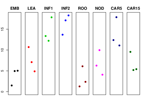 | ROO | Roots from the seedlings (10 cm shoot stage) | 1.2669 | 6.09562 | 2.36841 | 0 |