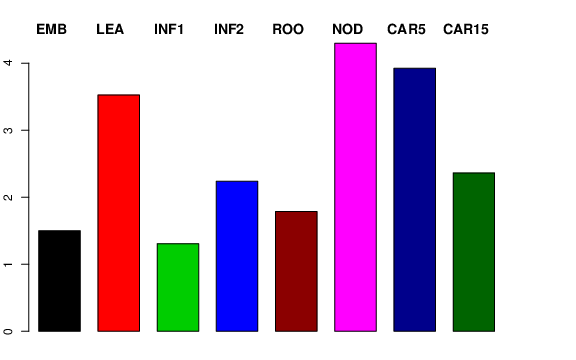 | ROO | Roots from the seedlings (10 cm shoot stage) | 1.76798 | 2.69604 | 1.10986 | 1.78488 |