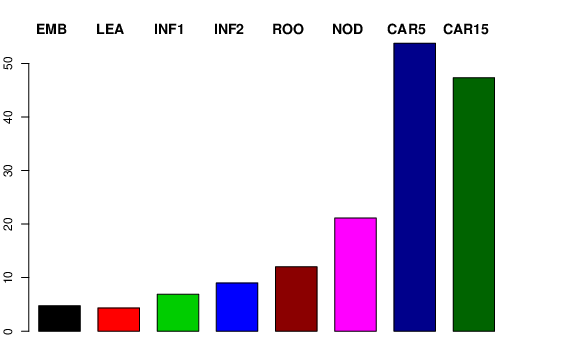 | NOD | Developing tillers at six leaf stage, 3rd internode | 8.05647 | 7.20608 | 3.27255 | 21.1196 |