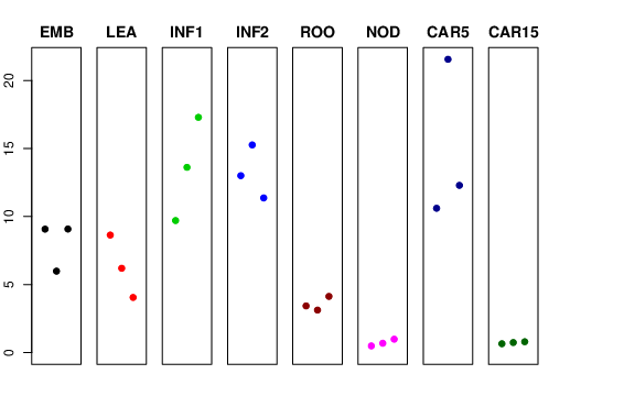 | ROO | Roots from the seedlings (10 cm shoot stage) | 3.42834 | 3.12283 | 4.12818 | 0 |