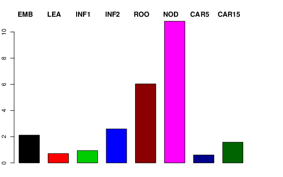 | ROO | Roots from the seedlings (10 cm shoot stage) | 0 | 2.45574 | 0 | 6.03298 |