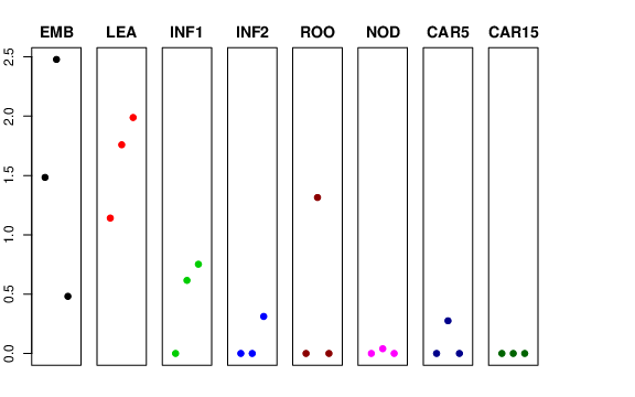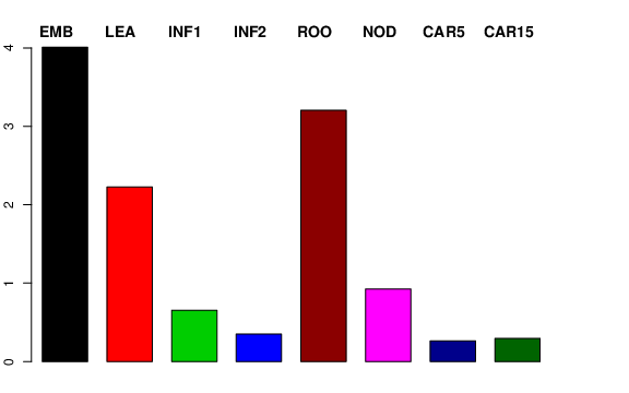 | ROO | Roots from the seedlings (10 cm shoot stage) | 0 | 1.31453 | 0 | 3.20344 |
