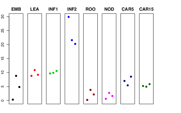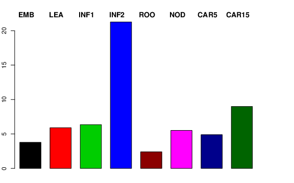 | ROO | Roots from the seedlings (10 cm shoot stage) | 0.242773 | 3.8291 | 2.20219 | 2.40073 |