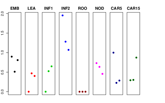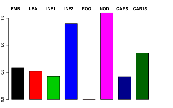 | ROO | Roots from the seedlings (10 cm shoot stage) | 0 | 0 | 0 | 0 |