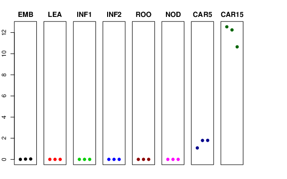 | ROO | Roots from the seedlings (10 cm shoot stage) | 0 | 0 | 0 | 0 |